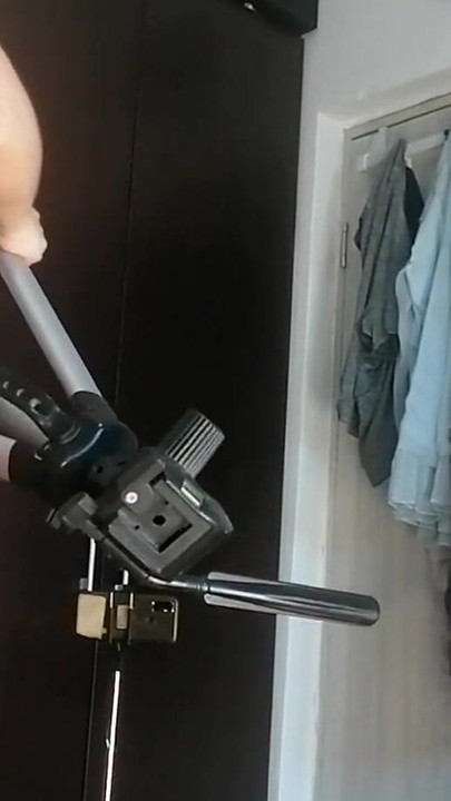 Amateur woman has fun trying on clothes and cutting them. Amateur woman vacuums naked in the house. | Clip 1